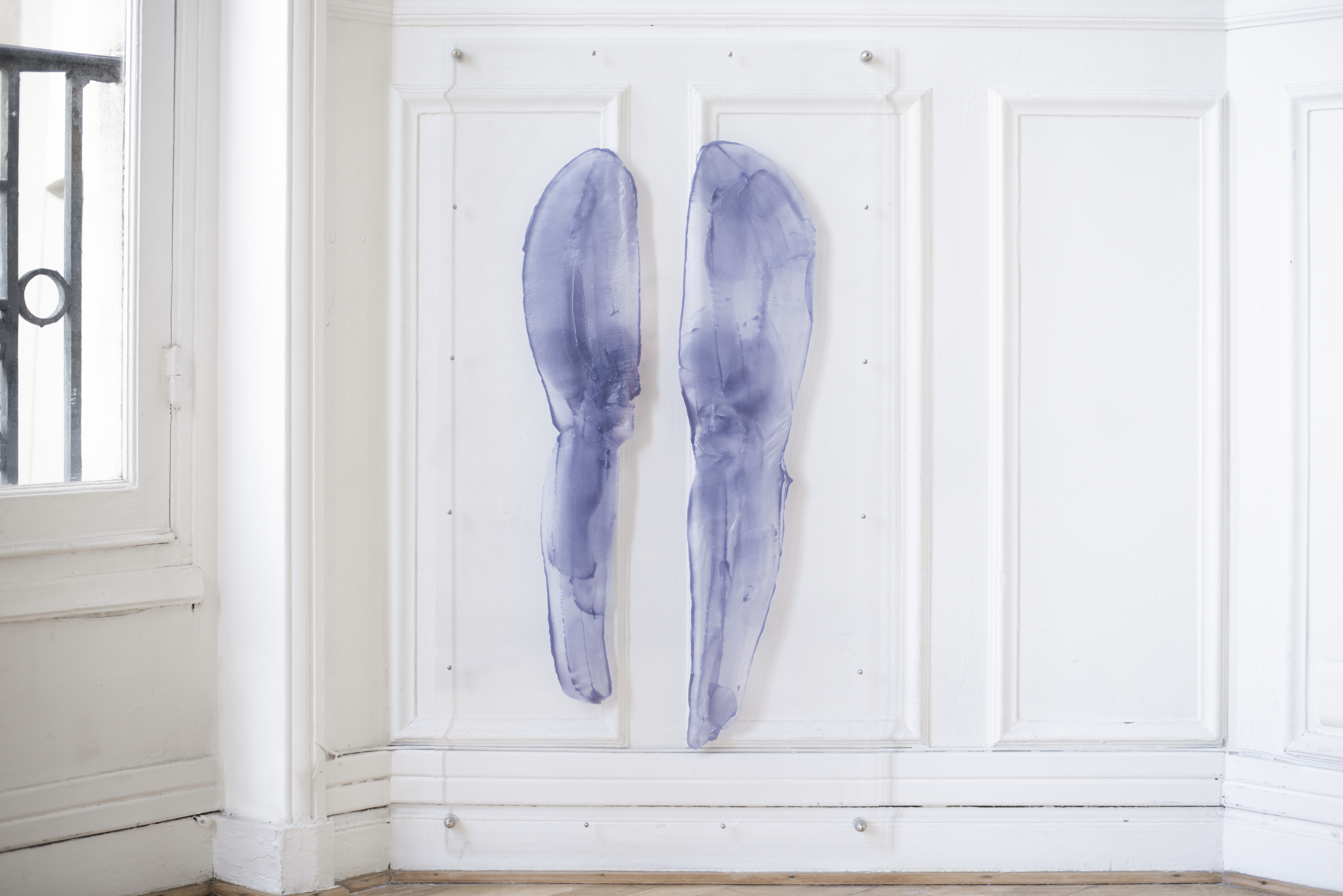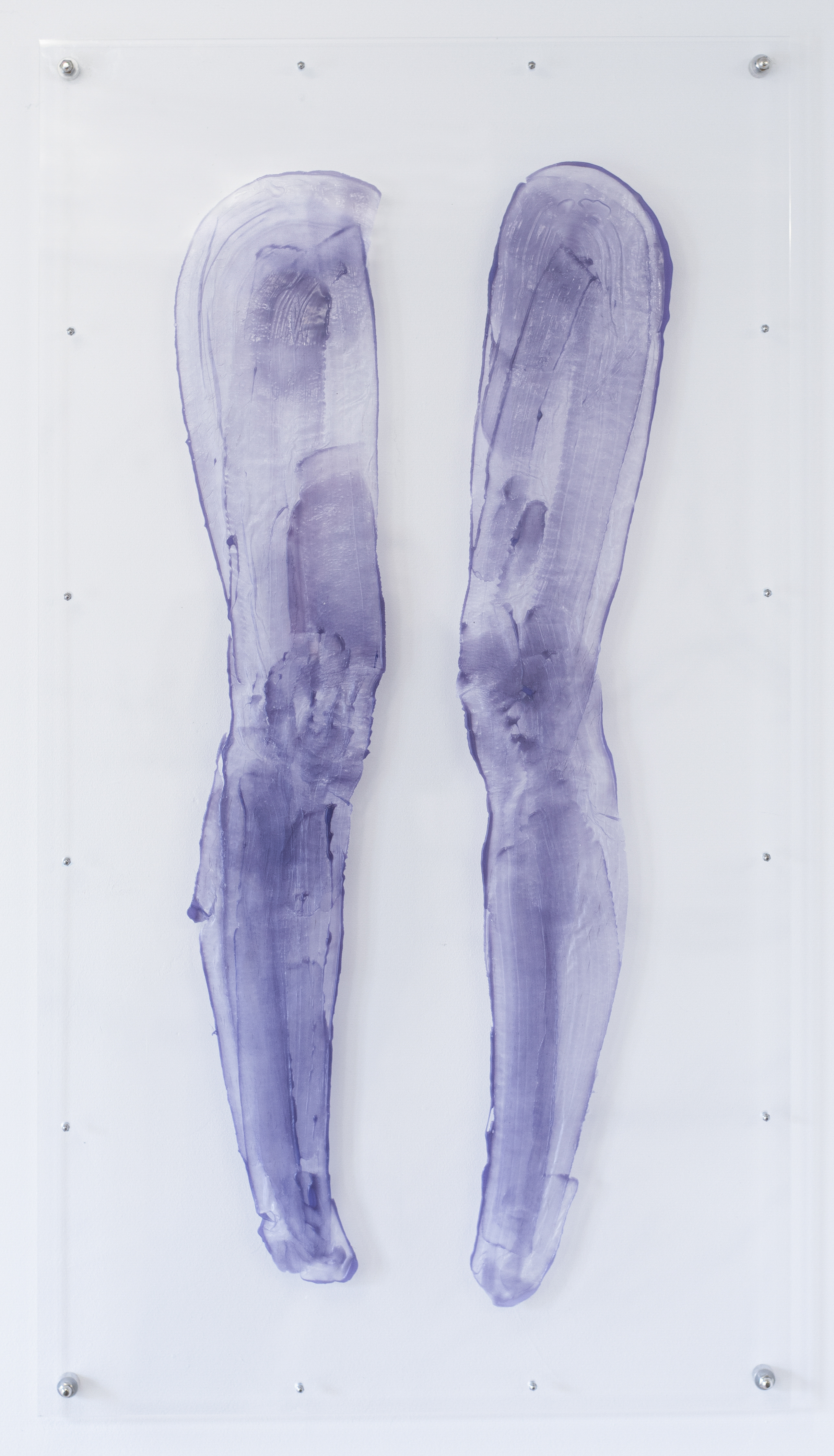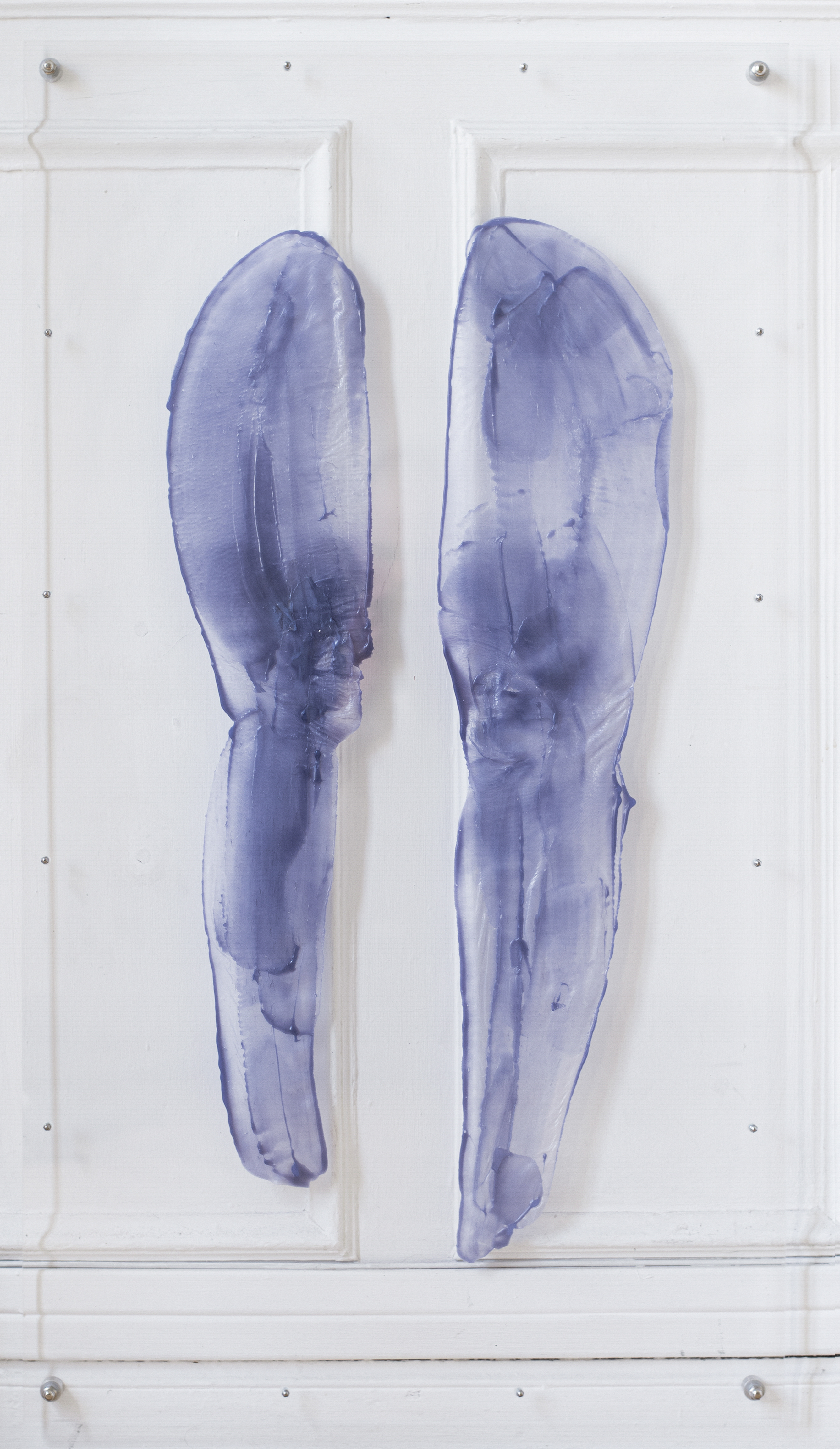 Alix Marie, Mue Mensuelle I, 2023, Pine resin and blue orchid wax, hair, perspex, 100 x 55 cm